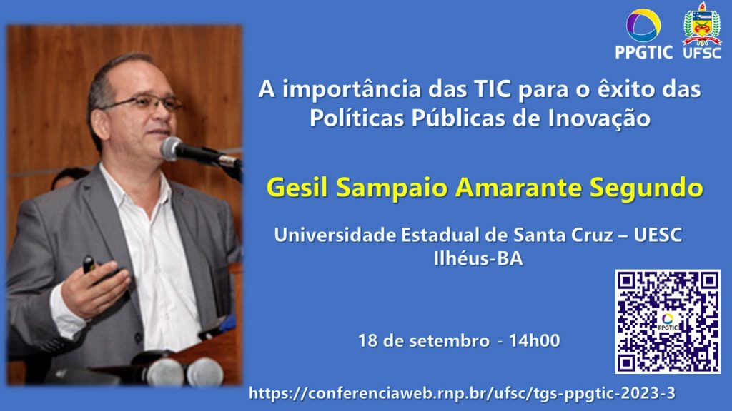 Prof. Gesil Sampaio Amarante Segundo: Possui graduação em Física – Bacharelado pela Universidade Federal do Rio de Janeiro (1993), mestrado em Física pela Universidade de São Paulo (1996) e doutorado em Física pela Universidade de São Paulo (2000). Atualmente é professor Titular da Universidade Estadual de Santa Cruz. Tem experiência na área de Física, com ênfase em Física de Plasmas e Descargas Elétricas, atuando principalmente nos seguintes temas: plasmas, antenas de rf, aquecimento e geração de fluxos por ondas de Alfvén, Computação de Alto Desempenho e Políticas Públicas de CT&I. É Coordenador do NIT-UESC, representante das ICTs na Rede de Propriedade Intelectual e Transferência de Tecnologia da Bahia (RePITTec), Presidente interino do Parque Cientifico e Tecnológico do Sul da Bahia, Presidente do Fórum Nacional de Gestores de Inovação e Transferência de Tecnologia (FORTEC) e ex-Coodenador-Geral do Forum de Assessores Parlamentares de Ciência, Tecnologia, Inovação e Educação (ForumCTIE).