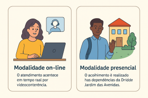 O atendimento acontece em tempo real por videoconferência, utilizando a plataforma Google Meet.